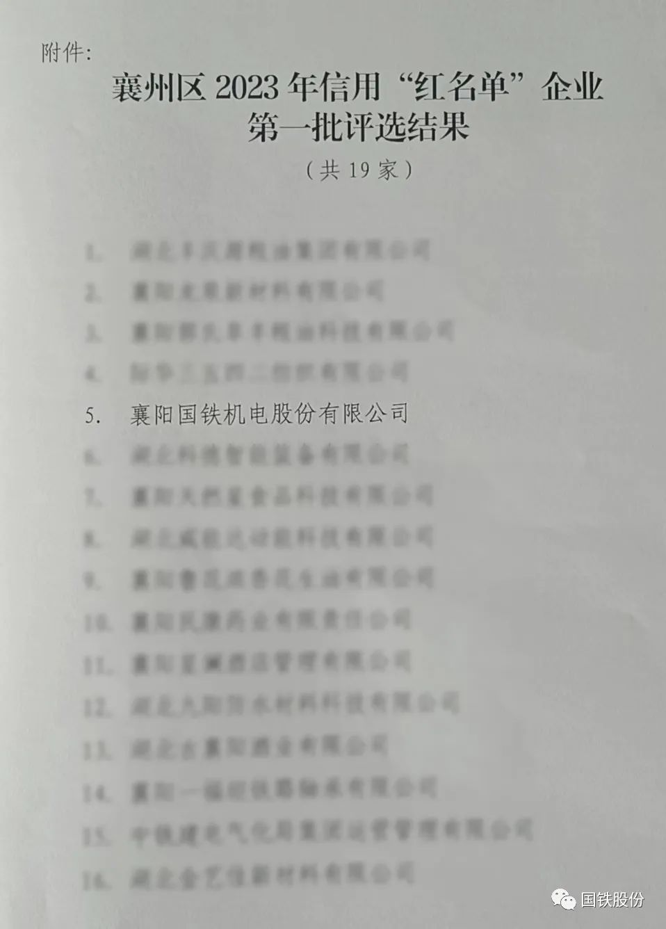 【喜報(bào)】國鐵機(jī)電獲“襄州區(qū)2023年信用‘紅名單’企業(yè)”榮譽(yù)